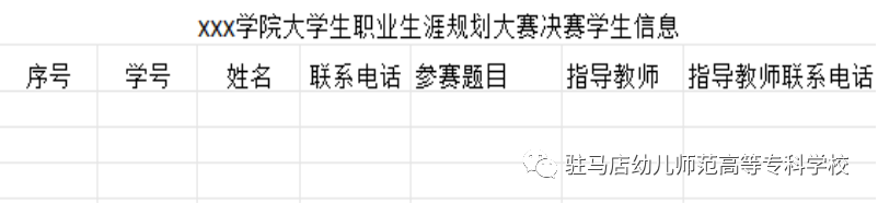 招生就业处根据各学院参赛报名情况分配决赛名额,各学院按要求上报进入决赛选手的信息表(表格内容见图1),并加盖学院公章,于2024年12月3日17:00点前送至就业指导办公室(综合楼一楼东大厅)。